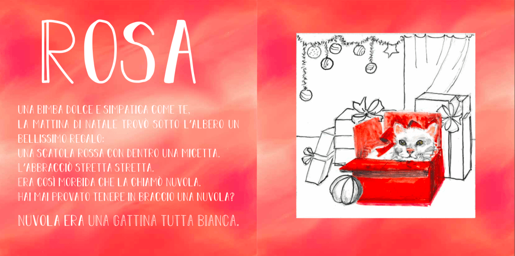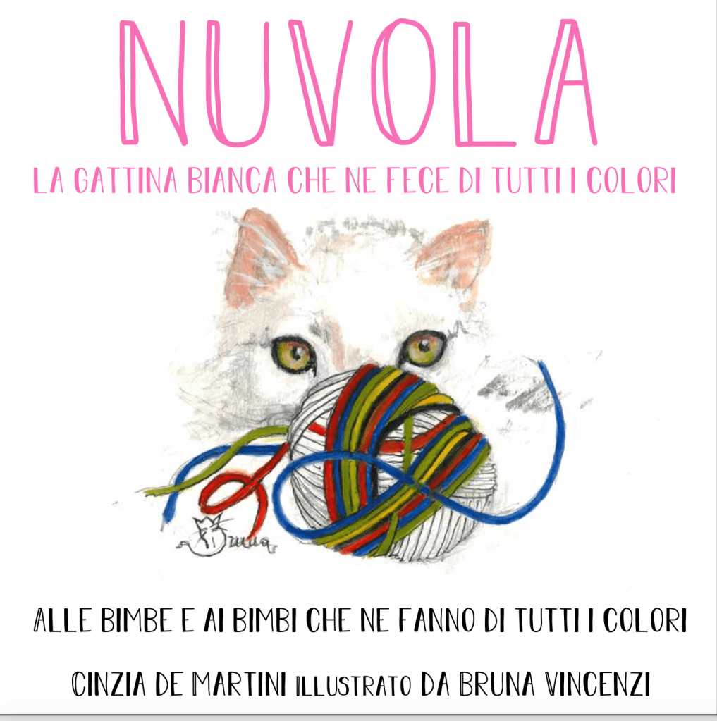 A Natale una bimba trova sotto l’albero una micina. É candida e morbida, e lei la chiama Nuvola. La gattina è curiosa, come tutti i cuccioli, e un giorno decide di esplorare il mondo. E il mondo le lascia addosso i suoi colori. Diventa rossa, gialla, blu, verde, nera. E poi ritorna dalla sua padroncina, e ritrova il suo candore.